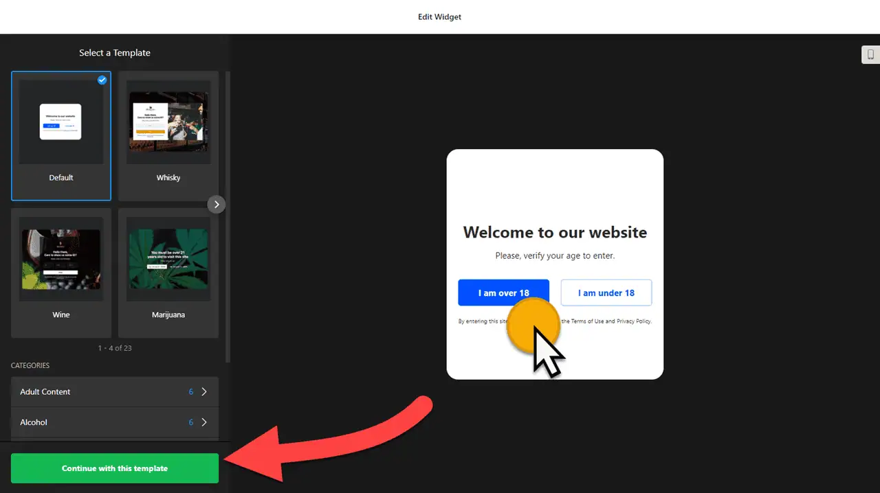 Select a template, click on the “Continue with this template” button, and customize your widget. Your widget has many customization options. You can also use custom CSS and JS to enhance your touch further!